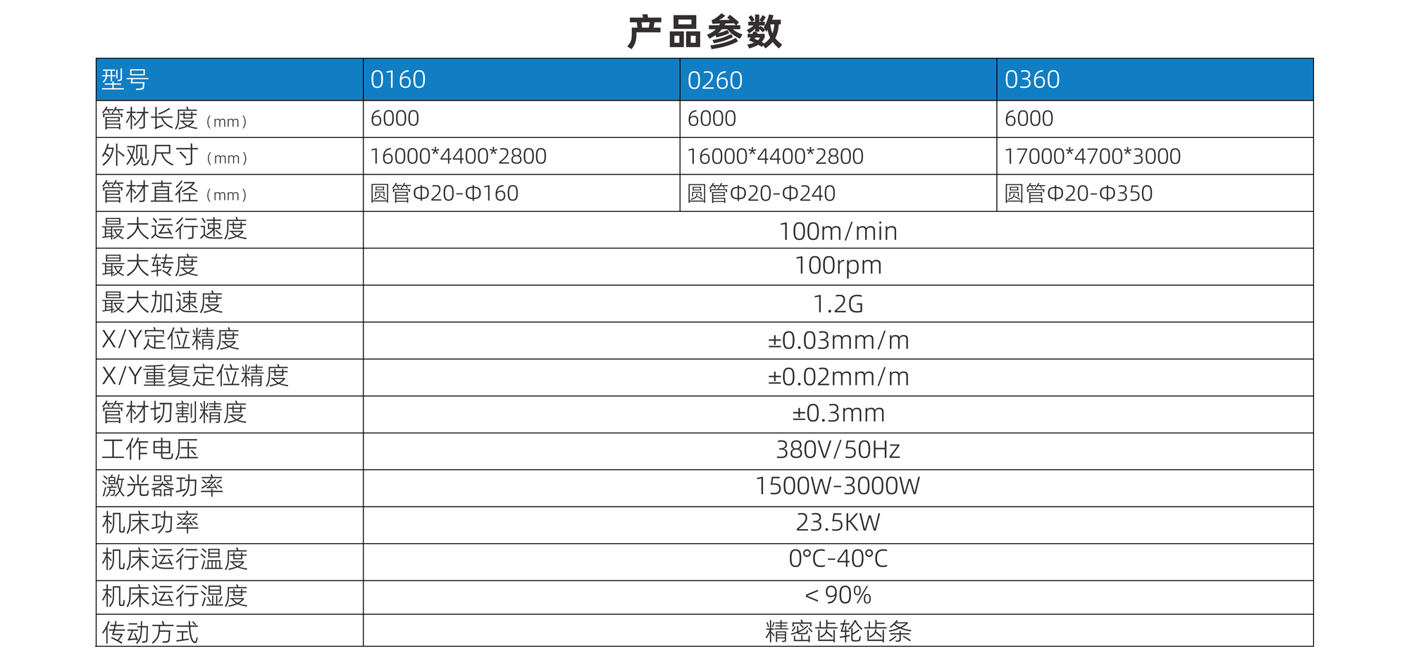 管材直徑(mm) 圓管Φ20-Φ160 圓管Φ20-Φ240 圓管Φ20-Φ350