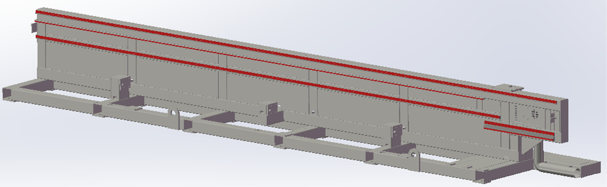采用一體式焊接床身,焊接完成后進行退火處理,龍門加工中心一次加工完成,精度高、剛性強。
